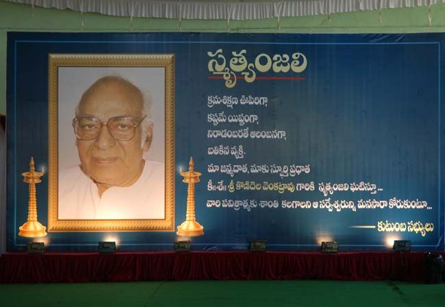 The 10th day ceremony of Chiranjeevi's father Venkata Rao was held at Cyber Gardens near Hitech City in Hyderabad on Thursday. Chiranjeevi's family paid floral tributes to their beloved man. Eminent people from film industry to politics attended the memorial and joined Chiranjeevi's family in paying tributes to the departed soul. The much talked about Central Minister Dasari Narayana Rao's presence aroused some curious moments among the visitors. Chiranjeevi personally accompanied Dasari to the portrait of his late father. Among other noted personalities who attended the ceremony were Akkineni Nageswara Rao, D.Rama Naidu, K. Raghavendra Rao, MS Reddy, Gaddar, Nagarjuna and key persons of Chiru, Pavan's fans associations. Later, Chiranjeevi's family thanked one and all for sharing their feelings by making a personal visit in the moments of their grief caused by the sudden demise of family doyen Venkata Rao.