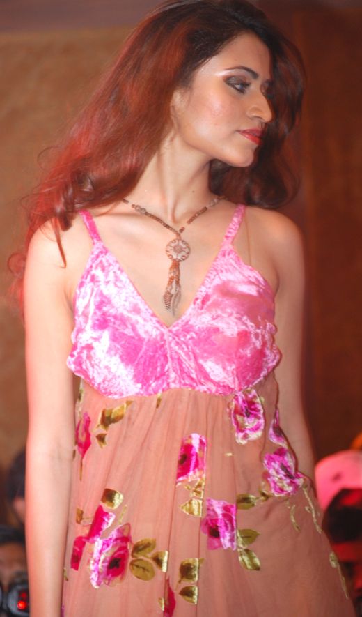 A model lights up the ramp during the unveiling function of the team uniform of IPL's Deccan Chargers at Tajkrishna on Sunday evening.