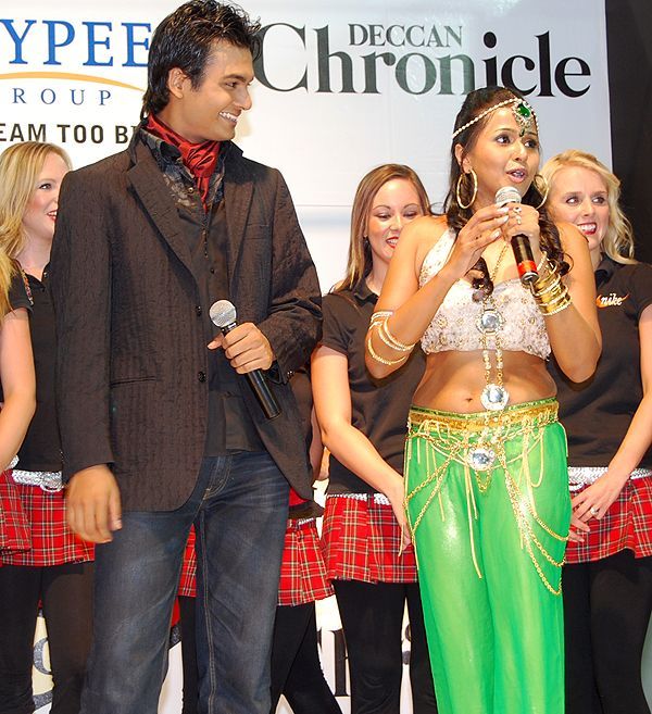IN FULL SWING : Singer Smitha performing along with cheergirls before ther start of the IPL T20 match on Sunday.