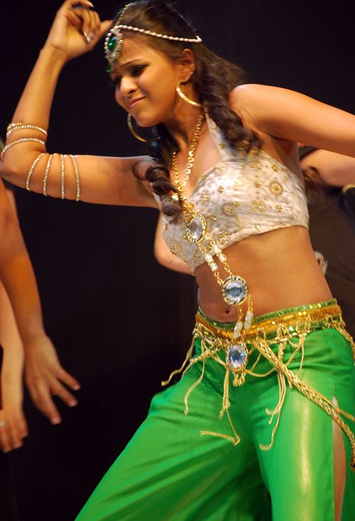 IN FULL SWING : Singer Smitha performing along with cheergirls before ther start of the IPL T20 match on Sunday.