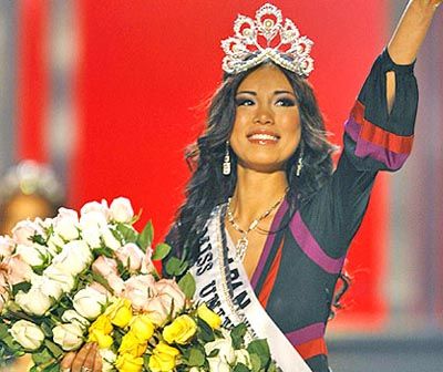 Mori, 20, the 56th winner of the title, was given her $250,000 diamond-and-pearl crown by last year s winner, Zuleyka Rivera of Puerto Rico, watched by a live audience of 10,000 and some 600 million television viewers worldwide.