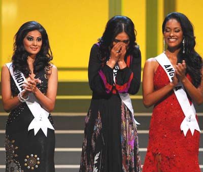 The candidate to Miss Universe 2007 title, Riyo Mori of Japan (C), celebrates as she