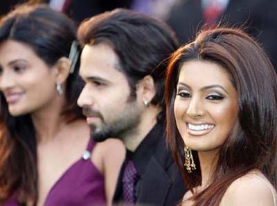 Actors Emraan Hashmi (C), Geeta Basra (R) and Sayali Bhagat (L)