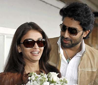 Newly wed couple Aishwarya and Abhishek were greeted with a bouquet of white roses.