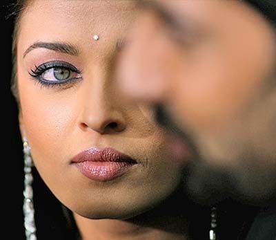 Bollywood star Aishwarya Rai listens to her husband Abhishek Bachchan give an interview at the IIFA awards at the Hallam FM Arena in Sheffield, England.