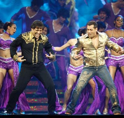 Bollywood actors Govinda and Salman Khan perform during the International Indian Film Academy Awards (IIFA) in Sheffield, northern England, June 9, 2007.