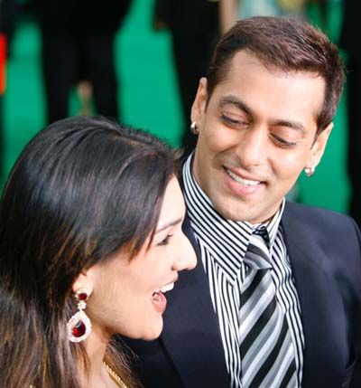 Bollywood actor Salman Khan (R) arrives with an unidentified guest for the Indian International Academy Awards (IIFA) in Sheffield, northern England, June 9, 2007.