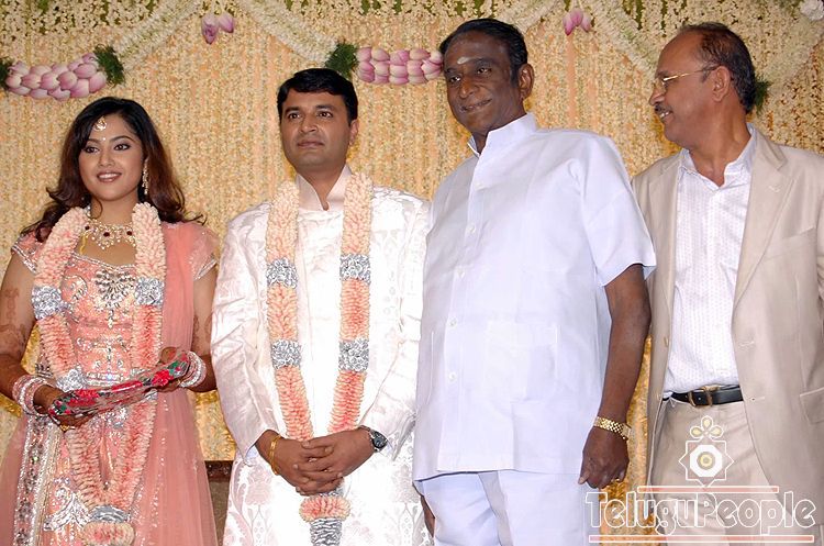 The pretty lass recently hosted a lavish reception in the city, which was attended by the who’s who of the city. Looking pretty in a pink lehenga, she had her smile on while accepting wishes. But the cynosure of all eyes was actor Venkatesh, who made a surprise visit to wish his co- star a happy marriage. The Dasavathaaram star was engrossed in a conversation with Kaviperarasu Vairamuthu. And Radhika, who was visibly exhausted after hubby Sarath Kumar’s b’day celebrations, still made it to the reception. It seemed like actress Lakshmi was hard pressed for time as she barely posed for the shutterbugs.