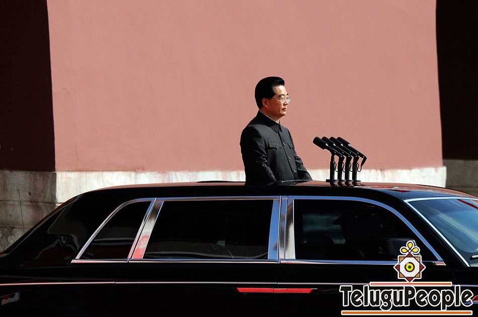 Chinese President Hu Jintao reviews soldiers before a parade in front of Tiananmen Gate in Beijing to mark the 60th anniversary of the founding of the People's Republic of China October 1, 2009.