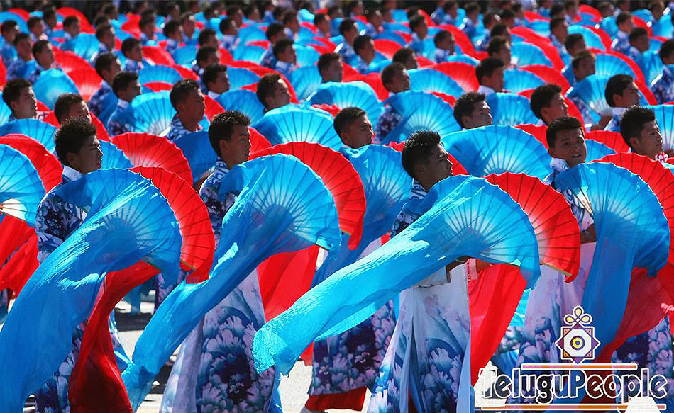 Dancers take part in a parade to celebrate China's 60th anniversary on October 1, 2009 in Beijing, China.