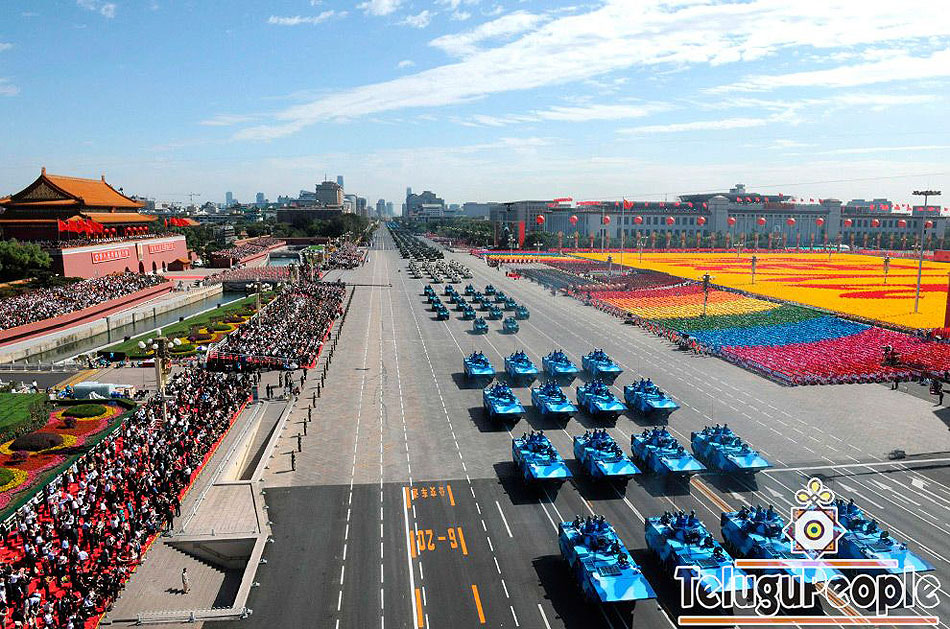 Armored vehicles roll down the street during a parade to mark the 60th anniversary of the founding of the People's Republic of China, in central Beijing October 1, 2009.