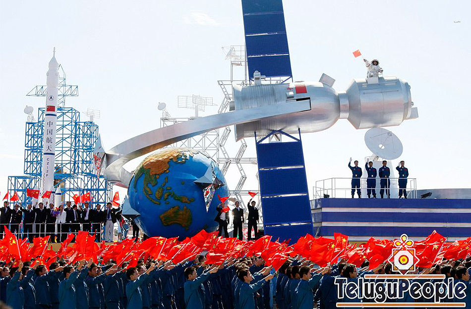 A float depicting China's space achievements participates in a parade to mark the 60th China anniversary in Beijing, China, Thursday, Oct. 1, 2009.