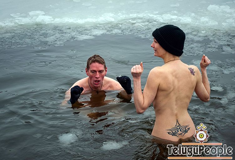 Winter swimmers of the "Berlin Seals" association ("Berliner Seehunde") take the traditional new year swim in water at a temperature of at one degree celcius in the Orankesee Lake on January 1, 2010 in Berlin. (MICHAEL KAPPELER/AFP/Getty Images) #