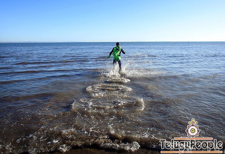 A New Year's reveller runs in for a dip in the icy sea during the Saundersfoot annual charity swim on January 1, 2010 in Saundersfoot near Tenby, Wales. Hundreds of brave swimmers ran in to to the sea to welcome in 2010 and raise cash for charity. (Christopher Furlong/Getty Images) #