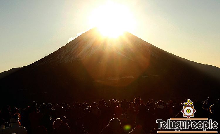 People admire the moment the sun rises above Mount Fuji, which is known locally as the "Diamond Fuji", from atop Ryugatake mountain in Fujikawaguchiko town, southwest of Tokyo on New Year's Day January 1, 2010. Mount Fuji, at 3,776 metres (12,388 ft), is believed to be sacred and is seen as a symbol of good luck, more so during the New Year period. (REUTERS/Yuriko Nakao) #