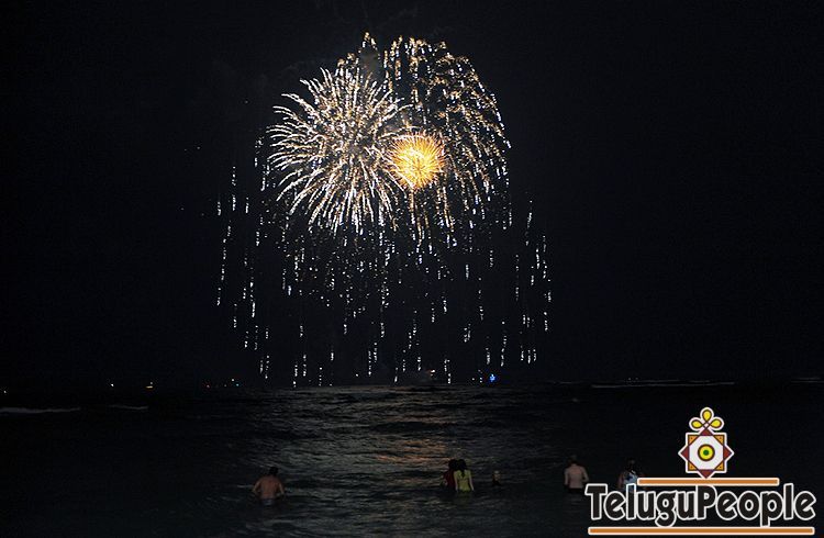 Fireworks explode in the sky over the ocean as seen from Waikiki beach in Honolulu, Hawaii, on January 1, 2010 soon after the clock ticked mid-night announcing the first day of New Year. (JEWEL SAMAD/AFP/Getty Images) #