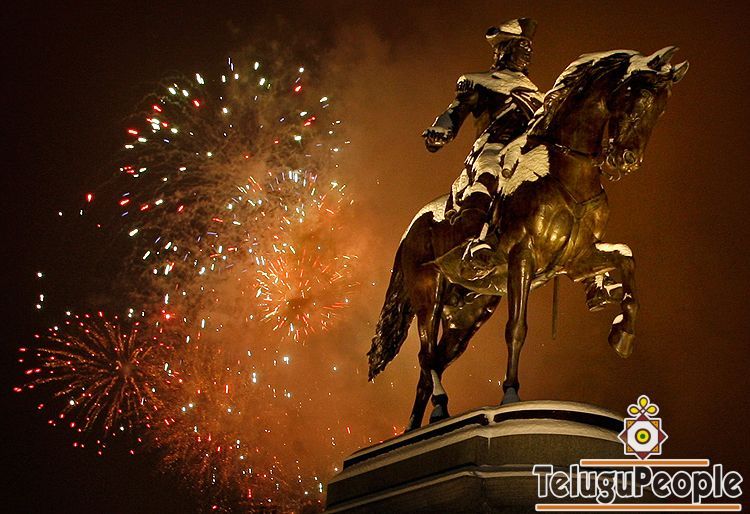 Fireworks explode over the statue of President George Washington in the Boston Public Gardens in Massachusetts on Thursday December 31, 2009. (Matthew J. Lee/Boston Globe staff) #