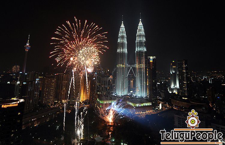 Fireworks explode near Malaysia's landmark Patronas Twin Towers during the New Year 2010 celebrations in Kuala Lumpur on January 1, 2010. (SAEED KHAN/AFP/Getty Images) #