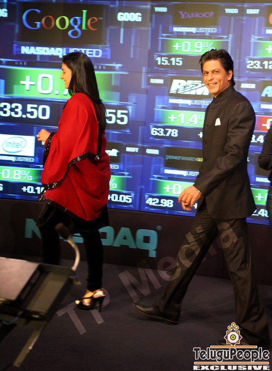 SRK and Kajol become the first indian stars to ring the NASDAQ bell and thus they have created a history. NASDAQ is the world’s biggest stock exchange.Shah Rukh seemed to be so excited that his Twitter status stated, “NASDAQ will be fun. Have to make sure I reach on time, otherwise will end up being blamed for economic up heavel across the world too..ha ha.”This is the first time that Indian stars were invited to ring the opening bell for the exchange as an act of promotion for their upcoming film My Name Is Khan.
