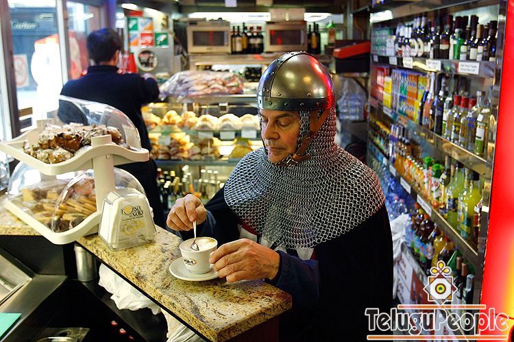 A costumed reveller enjoys his cappuccino in a bar next to Piazza San Marco during the Venetian Carnival in Venice, Italy on February 7, 2010. (REUTERS/Max Rossi) #