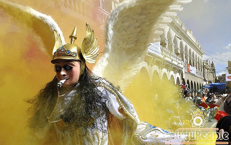 A dancer dressed up as an angel performs in the carnival parade in Oruro, some 400 kms from La Paz, Bolivia on February 13, 2010. The Carnival of Oruro is one of Bolivia's largest cultural events, and in 2001 was declared by UNESCO as one of mankind's Masterpieces of the Oral and Intangible Heritage of Humanity. (AIZAR RALDES/AFP/Getty Images) #