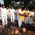 TDP Legislatures demostration eith empty pots in protest agaisnt the scarcity of drinking water and
