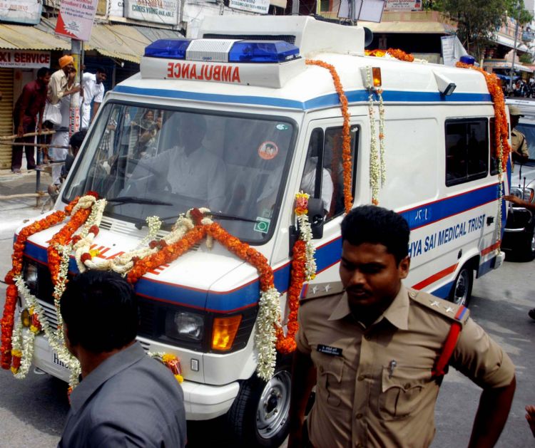 Heart rending scenes witnessed in Puttaparthi after the announcement of Satya Sai Baba's demise on Sunday morning. Baba's devotees who gathered in large number near Prashanti Nilayam cried their hearts on the site of an ambulance carrying the godmans body from hospital to Sai Kulwant Hall in Puttaparthi.