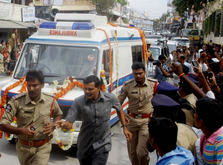 Heart rending scenes witnessed in Puttaparthi after the announcement of Satya Sai Baba's demise on Sunday morning. Baba's devotees who gathered in large number near Prashanti Nilayam cried their hearts on the site of an ambulance carrying the godmans body from hospital to Sai Kulwant Hall in Puttaparthi.