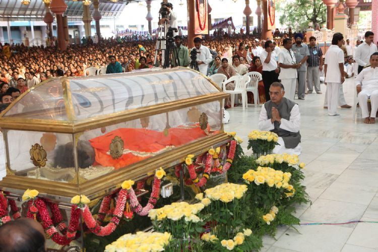 The mortal remains of Sathya Sai Baba were buried at Sai Kulwant Hall in Prashanti Nilayam in Puttaparthi on Wednesday morning. The last rites were performed by his nephew R.J. Ratnakar in accordance with vedic customs following full police honours.