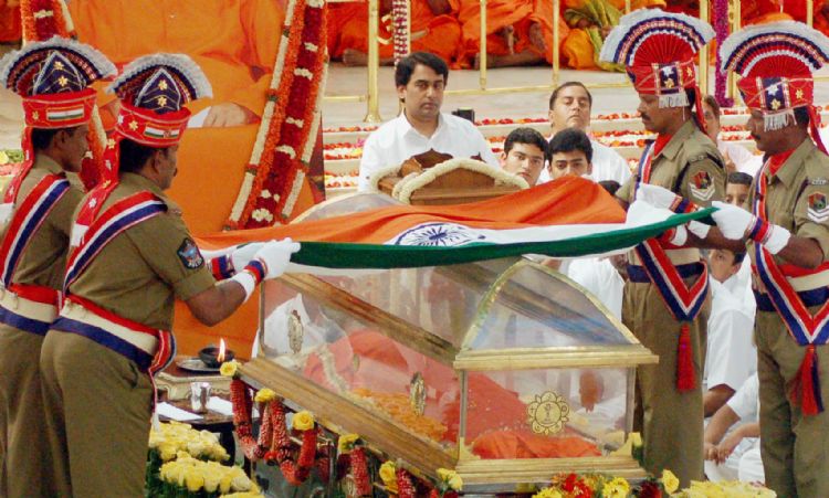 The mortal remains of the 85-year-old spiritual leader, Sathya Sai Baba, were buried at Sai Kulwant Hall in Prashanti Nilayam in Puttaparthi on Wednesday morning. The last rites were performed by his nephew R.J. Ratnakar in accordance with vedic customs following full police honours.
