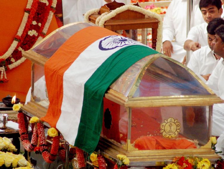 The mortal remains of the 85-year-old spiritual leader, Sathya Sai Baba, were buried at Sai Kulwant Hall in Prashanti Nilayam in Puttaparthi on Wednesday morning. The last rites were performed by his nephew R.J. Ratnakar in accordance with vedic customs following full police honours.