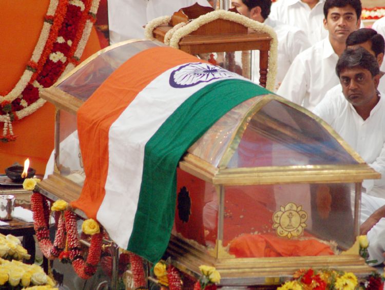 The mortal remains of the 85-year-old spiritual leader, Sathya Sai Baba, were buried at Sai Kulwant Hall in Prashanti Nilayam in Puttaparthi on Wednesday morning. The last rites were performed by his nephew R.J. Ratnakar in accordance with vedic customs following full police honours.
