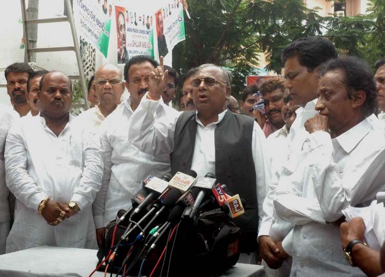 MP V Hanumantha Rao speaking to media at Gandhi Bhavan after meeting with Azad. Congress In-Charge for Andhra Pradesh Affairs Ghulam Nabi Azad meets party Legislators at party's state headquarters, Gandhi Bhavan in Hyderabad on Tuesday. INN Photos