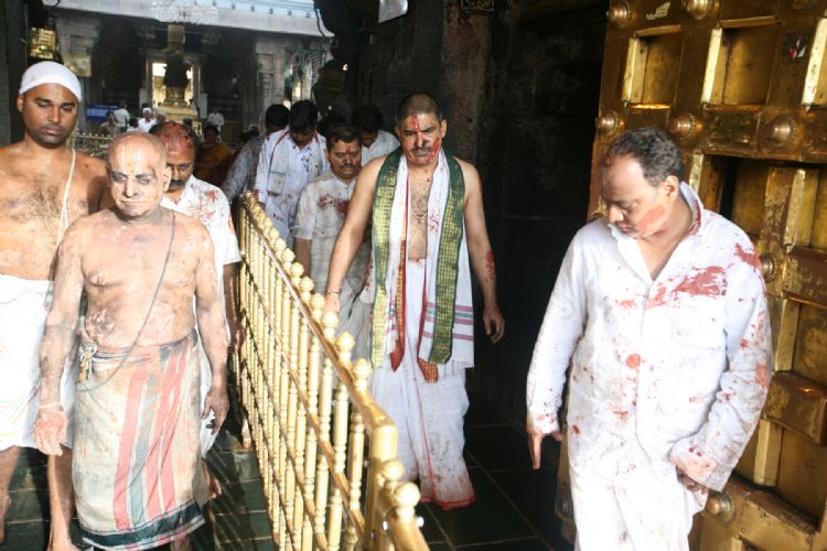Koil Tirumanjanam in Tirumala: TTD EO L.V.Subramanyam, DGP Dinesh Reddy, JEOs Dr. N.Yuvaraj, K.S.Srinivasa Raju, DIG Ms. Charu Sinha, Dy EO Munirathnam Reddy, Peshikar Chandrasekhar Pillai devotees and employees of TTD took part in the Koil Alwar Tirumanjanam on Tuesday.