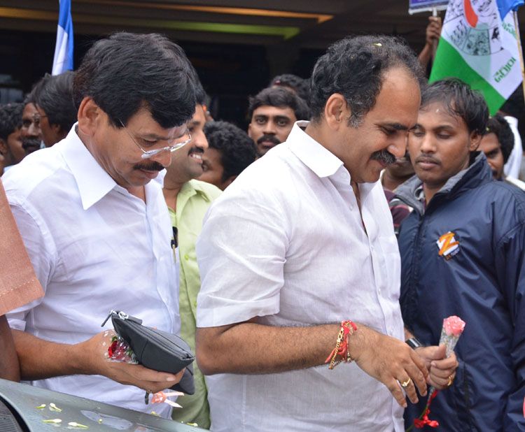MLAs loyal to YSR Congress president YS Jaganmohan Reddy, after tendering their resignations in Assembly, had arrived at Tirupati Airport on Monday, were on their way to Idupulapaya to pay homage at YSR memorial, before YSRC launching its campaign to counter the Congress party witch hunting YSR family and its disinformation campaign to malign the image of Jagan.