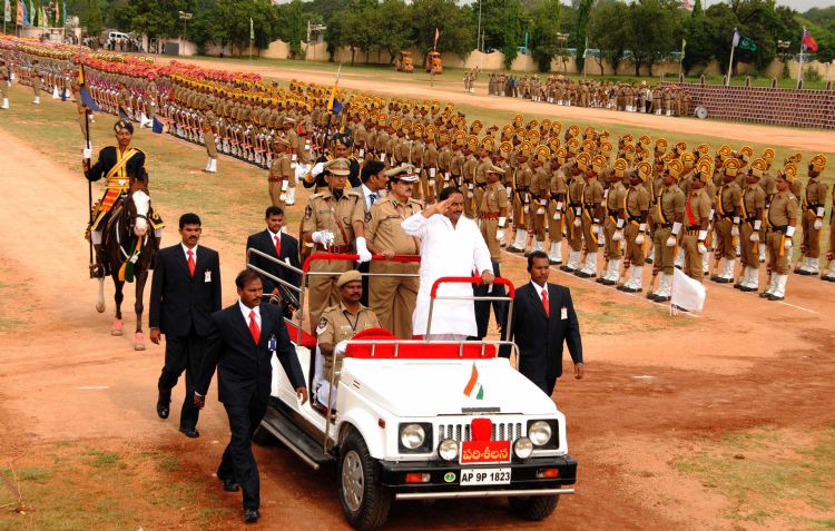 Chief Minister N.Kiran Kumar Reddy reviewing the Parade on the occasion of India’s 65th Independence day celebrations at Parade grounds, Secundrabad - INN Photos