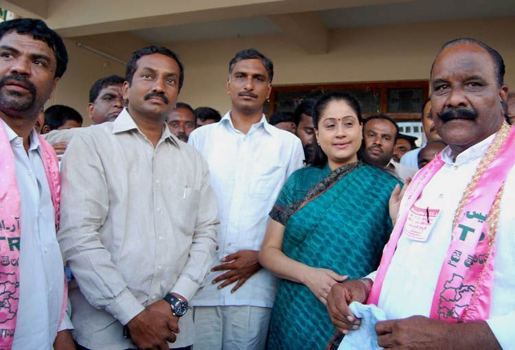 Telangana leaders T. Harish Rao, and Nayani Narasimha Reddy were arrested by the police on Wednesday and brought to Dabeerpura Police Station. TRS MP Vijayshanti was among the leaders who came to the police station - INN Photos