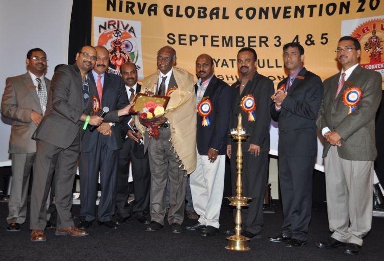 NRIVA Global Convention 2011 held at Hyatt Dulles in Washington D.C. The three day convention, first of its kind, has been attended by dignataries and delegates from various walks of life both from USA and India. The legend of indian industry Grandhi Mallikarjuna Rao of GMR Group has been the star attraction of the event. He presented the keynote address on the second day of convention on Sunday.