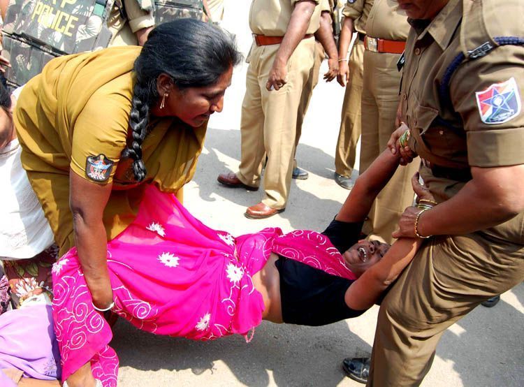Police arresting CPI activists for participating in the Rail Roko at the Kachiguda Railway Station here on Saturday - INN Photos