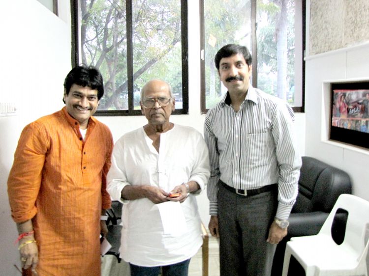 North America Telugu Society (NATS) Presented Rs. Two Lakhs to Director Sri. Bapu and Late Sri Mullapudi Venkata Ramana as part of Life Time Achievement awards announced by NATS. The check was presented to Bapu in Hyderbad on behalf of the executive committee by Vimal Kavuru, NATS Director and Board of Trustees and Dr. Ghazal Srinivas, NATS Brand Ambassador.