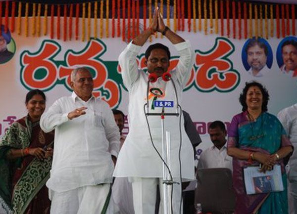 Chief Minister N.Kiran Kumar Reddy participating in Rachabanda programme in Medak district on Friday.