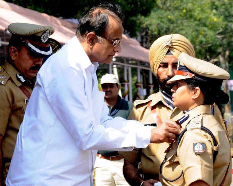 Union Home Minister for Home P Chidambaram reviewing the Dikshant Parade of IPS Officer Trainees of 2010 batch at the Sardar Vallabhabhai Patel National Police Academy here on Saturday - INN Photos