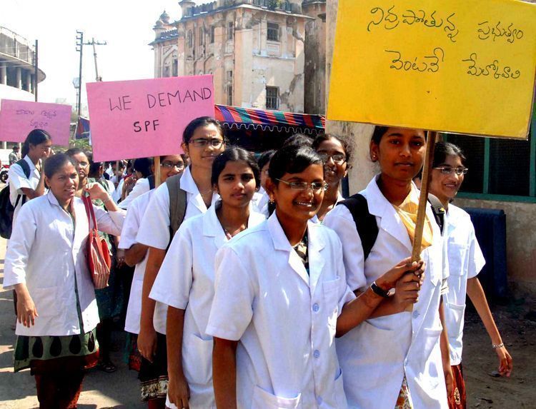 Agitating Junior doctors take out rally around the Osmania General Hospital here on Friday demanding formation of SPF - INN Photos