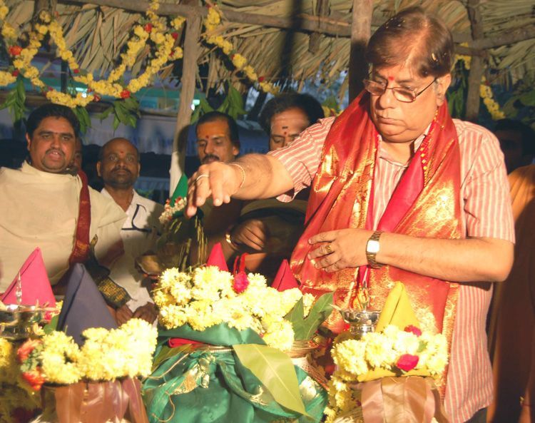 Chief Secretary Pankaj Dwivedi performs pooja during the laying of foundation for a new temple at the State Secretariat here on Tuesday - INN Photos