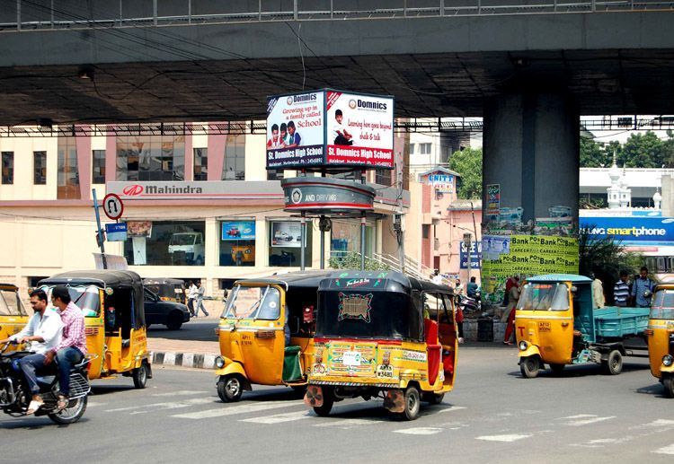 Mismanagement of traffic leads to chaos at busy Nalgonda crossroads on regular basis. Vehicle users prefer to enter the No Entry Zone than using the flyover bridge which was constructed to de-congest the traffic - INN Photos