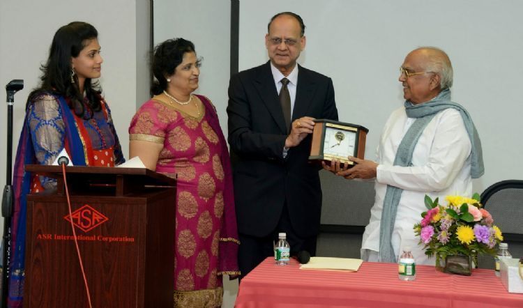 Rajarajeswari and Subba Rao Anumolu of ASR International Corporation, Hauppauge, NY ( www.asrintl.com ) honor the Telugu Cinema Legend, Dr. Akkineni Nageswara Rao and local dignitaries in Hauppauge, New York. Photocredit: Anand Chikine