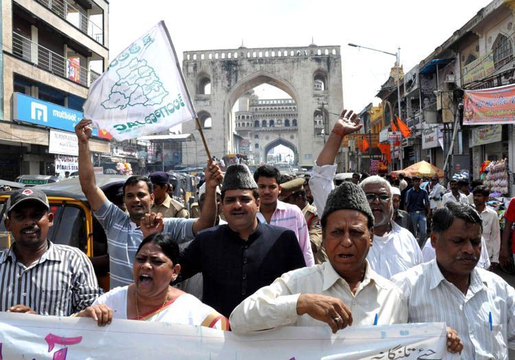 Old City TJAC activists take out rally from Charminar here on Sunday in connection with the Telangana March - INN Photos
