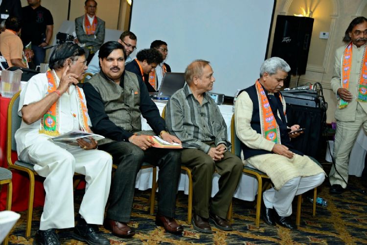 Overseas Friends of BJP's Nationcal Council Meeting was held in North Brunswick, NJ from September 14th to 16th. Attendees include Shri Ram Lal Gupta, National General Secretary (Org), BJP, Shri Vijay Jolly, Overseas Convener of the foreign affairs cell, BJP and Gajendra Solanki, Co-convenor, Cultural Cell, BJP. Photocredit: Shivakumar Chikine