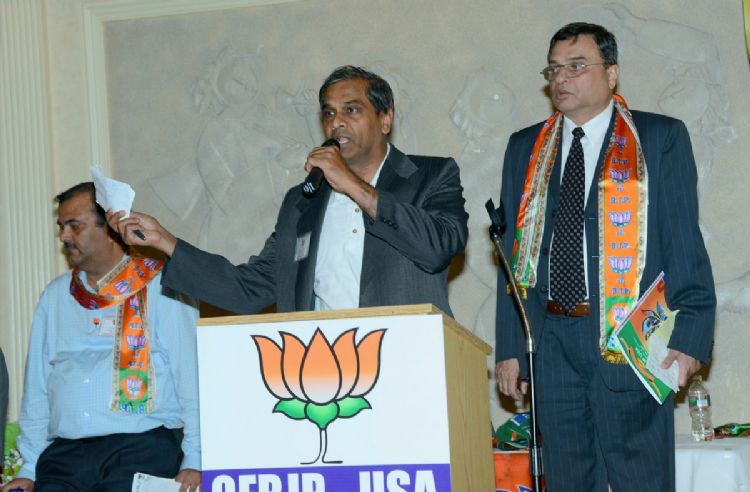 Overseas Friends of BJP's Nationcal Council Meeting was held in North Brunswick, NJ from September 14th to 16th. Attendees include Shri Ram Lal Gupta, National General Secretary (Org), BJP, Shri Vijay Jolly, Overseas Convener of the foreign affairs cell, BJP and Gajendra Solanki, Co-convenor, Cultural Cell, BJP. Photocredit: Shivakumar Chikine