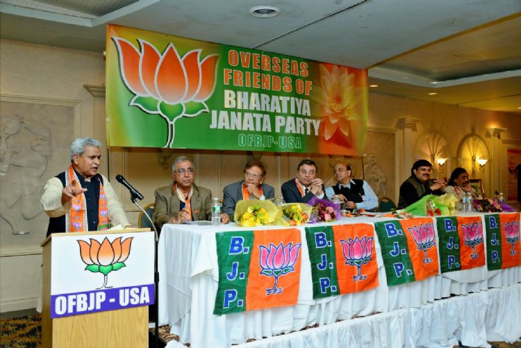 Overseas Friends of BJP's Nationcal Council Meeting was held in North Brunswick, NJ from September 14th to 16th. Attendees include Shri Ram Lal Gupta, National General Secretary (Org), BJP, Shri Vijay Jolly, Overseas Convener of the foreign affairs cell, BJP and Gajendra Solanki, Co-convenor, Cultural Cell, BJP. Photocredit: Shivakumar Chikine